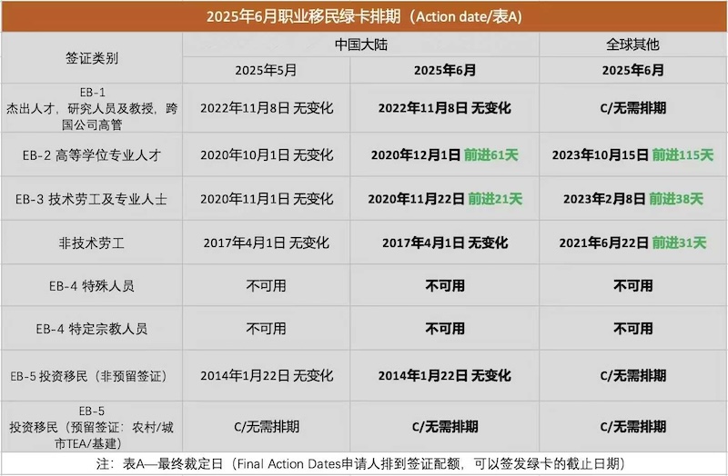 2025年6月美国移民排期出炉!EB2及EB3类别小幅前进!