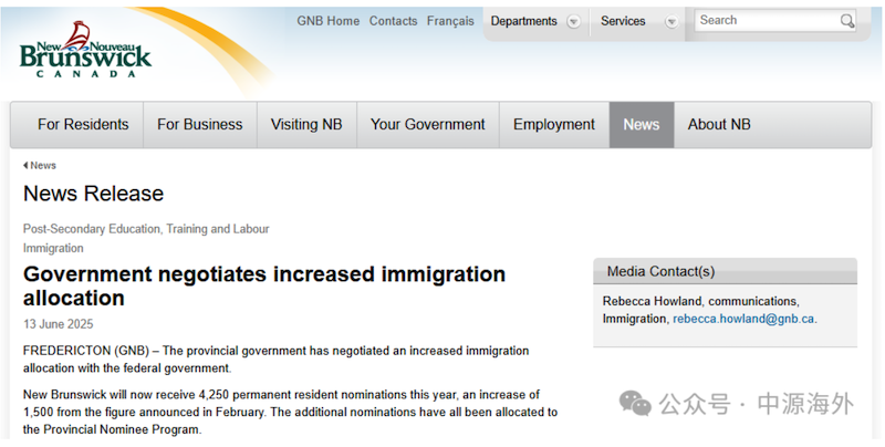 经过新一轮艰苦的谈判,加拿大NB省(新不伦瑞克省)终于在2025年6月与加拿大联邦政府达成协议,将2025年省提名移民配额从年初的2750个提高到4250个。