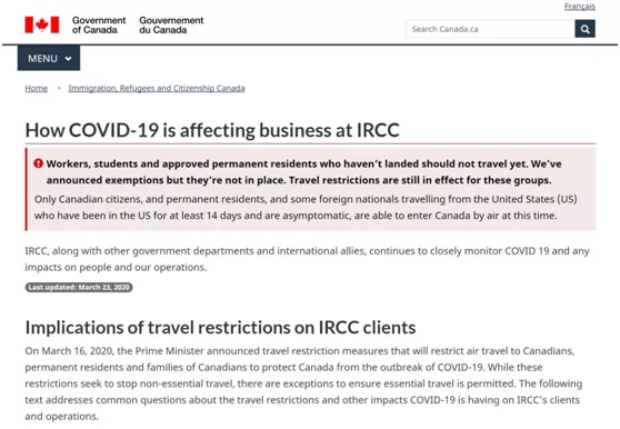 加拿大当地时间2020年3月23号,加拿大移民局为此特意开辟COVID-19专页,公布了更多关于出入境的最新信息,今天,我们就带大家来看一下,此次的政策对留学生、新移民申请人以及出入境旅客的影响。