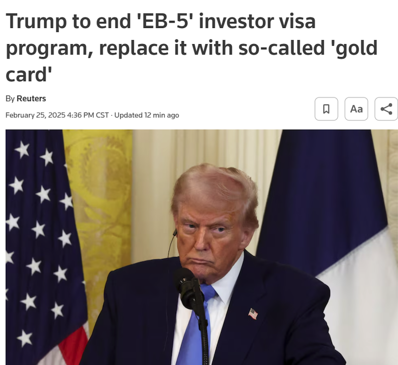 惊爆!特朗普将废除美国EB-5签证,并开售最低定价500万美元的移民“金卡”
