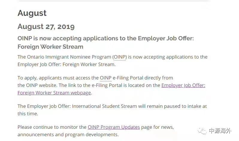果然不出我们所料,安省移民局今天(8月27日)突然宣布重开其今年4月份关闭的雇主担保移民,不过这次重新开放的只是海外劳工类别(Foreign Worker),而国际留学生类别(International Student) 还是暂停中。