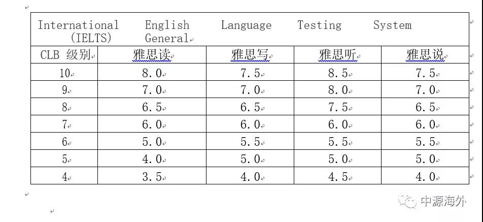 下面是CLB和雅思IELTS分数对应表,这样大家就会一目了然。