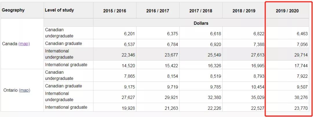 以安省为例,今年安省的本地学生费用是下降的,其中本科生学费下降9.9%。而安省的留学生本科学费却达到了$38,276,比去年贵了9.2%。