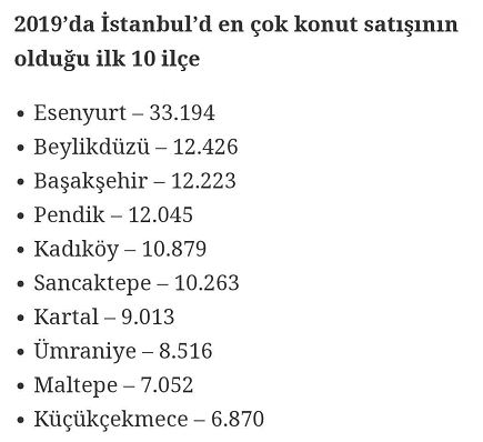 近日,土耳其统计局(Turk Stat)新发布的数据显示,2019年伊斯坦布尔房屋销售量达到237675套,相比去年继续保持增长,以17.6%的份额在土耳各城市中排名第一,数量是紧随其后的三个城市的总和!其中,伊斯坦布尔的巴萨克赛尔区、卡塔尔区较受投资者欢迎!