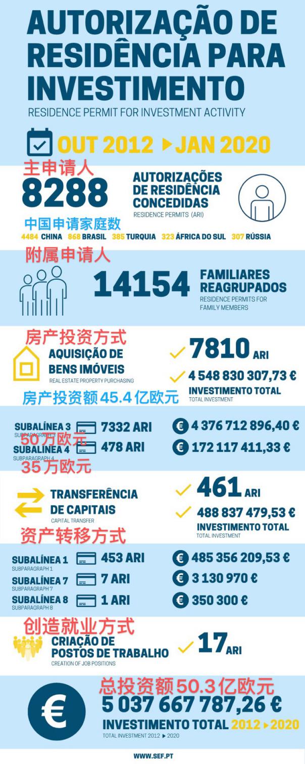 数据显示,截至2020年1月31日,累计有8288组家庭申请葡萄牙黄金居留许可,在所有申请者中,中国投资者依旧居多,共有4484组中国家庭申请葡萄牙黄金居留许可,可见,葡萄牙黄金居留许可依旧备受中国投资者青睐。