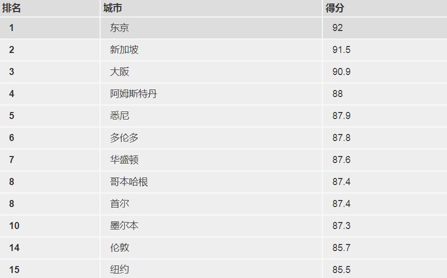 世界安全城市榜单