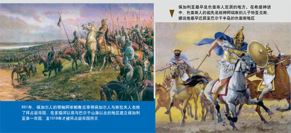 681年,保加尔人的领袖阿斯帕鲁克率领保加尔人与斯拉夫人击败拜占庭帝国,并签订条约,在多瑙河以南与巴尔干山脉以北的地区建立保加利亚第一帝国,此后的300年,保加利亚帝国成为区域强权,和相邻的拜占庭帝国互有征伐,在西美昂一世在位时期(893~927年)达到极盛,大军曾兵临君士坦丁堡,拜占庭皇帝与之求和,但之后其国力日衰,于1018年被拜占庭帝国灭国,并入拜占庭版图。