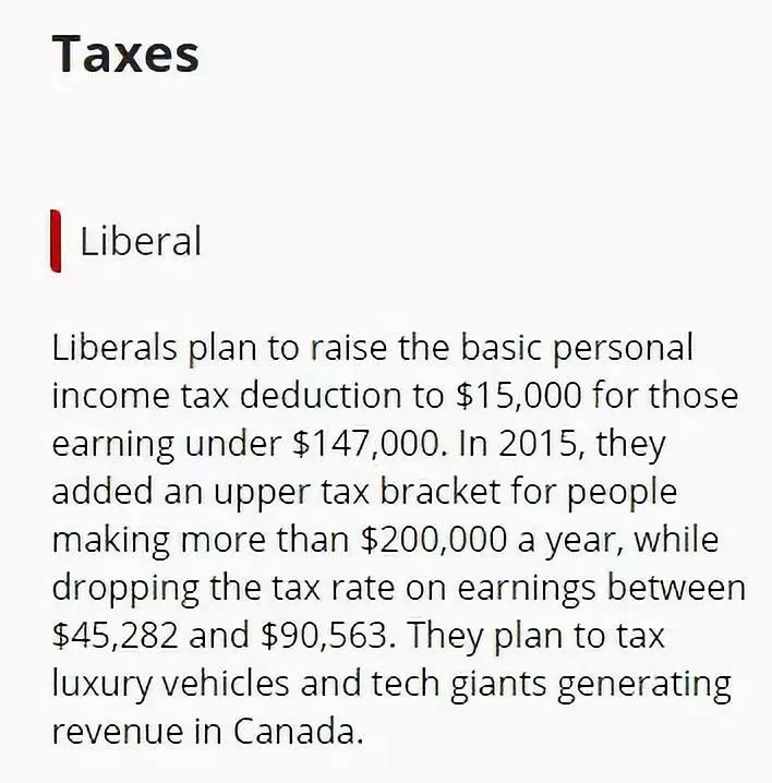 在大选的选举政纲中,自由党承诺提高年收入14.7万以下人群的基本免税额。如果这个承诺得以充分实施,那么这些纳税人的个人所得税基本免税额将提高至15000元,但会从2020年开始分4年逐步实施。目前,即将申报的2019年个人所得税的联邦基本免税额为12069元,今年申报的2018年的基本免税额为11809元。按照自由党的说法,提高基本免税额后,每个家庭平均每年可以少交600元税。